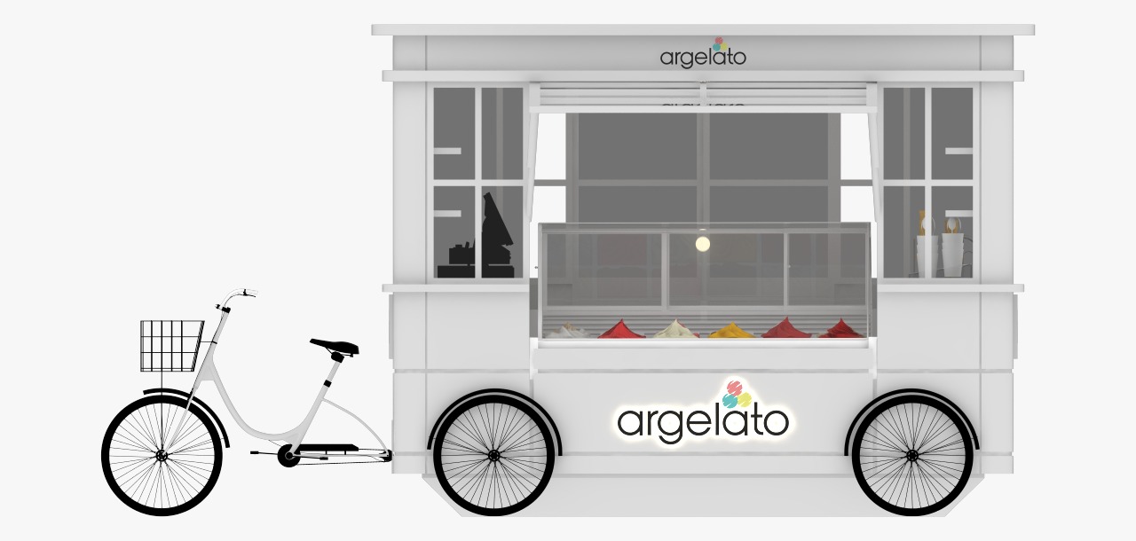 Argelato için bisiklete entegre, tenteli yapıya sahip mobil dondurma satış standı tasarlanmıştır. Ön sergileme alanlarıyla ürün sunumu güçlendirilmiş, içerisinde satış yapılabilecek fonksiyonel bir kurgu oluşturulmuştur.