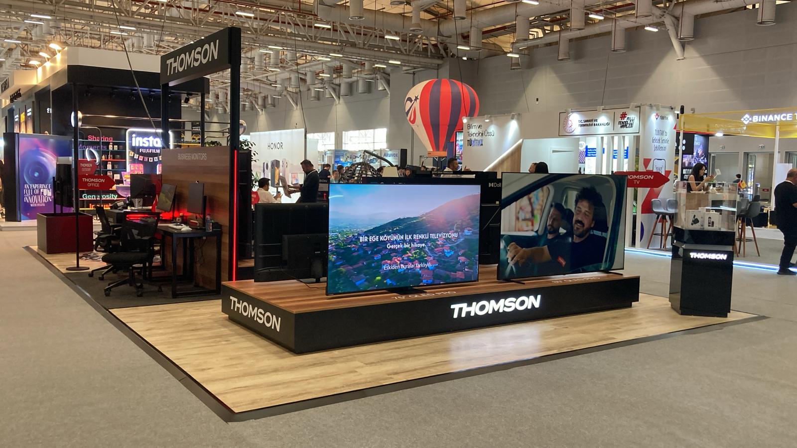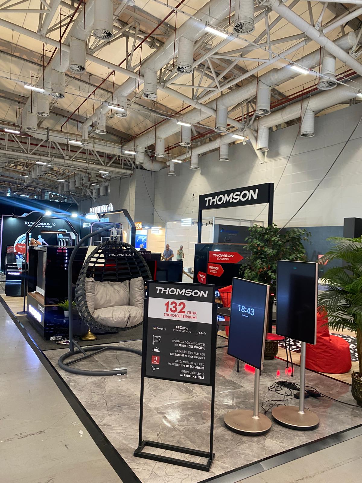 Thomson markası için SDN Fuarı kapsamında tasarlanan deneyim alanında, ziyaretçilerin ürünlerle birebir etkileşim kurabileceği, marka teknolojisini doğrudan deneyimleyebileceği güçlü bir alan kurgusu oluşturulmuştur.